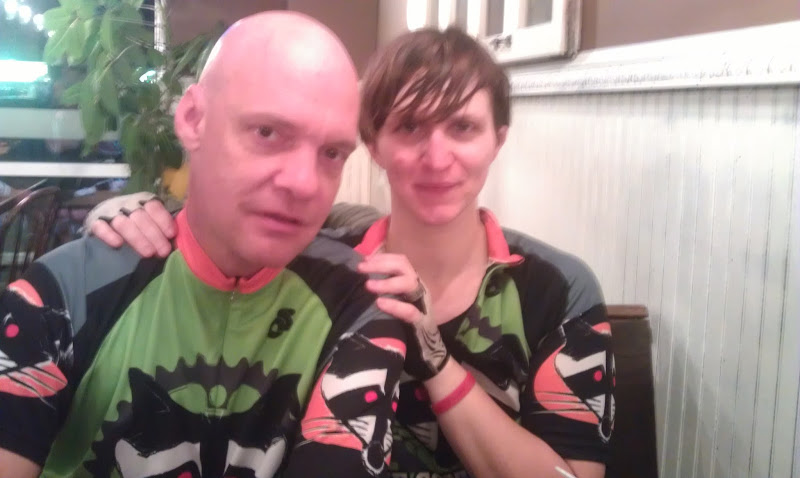 Denis was lamenting the fact that we didn’t have matching Zombie Raccoon jerseys — but, conveniently enough, Dave had one that was too small, so we made him an offer he couldn’t refuse 😀 Denis changed before we headed out, so we matched on the ride.
