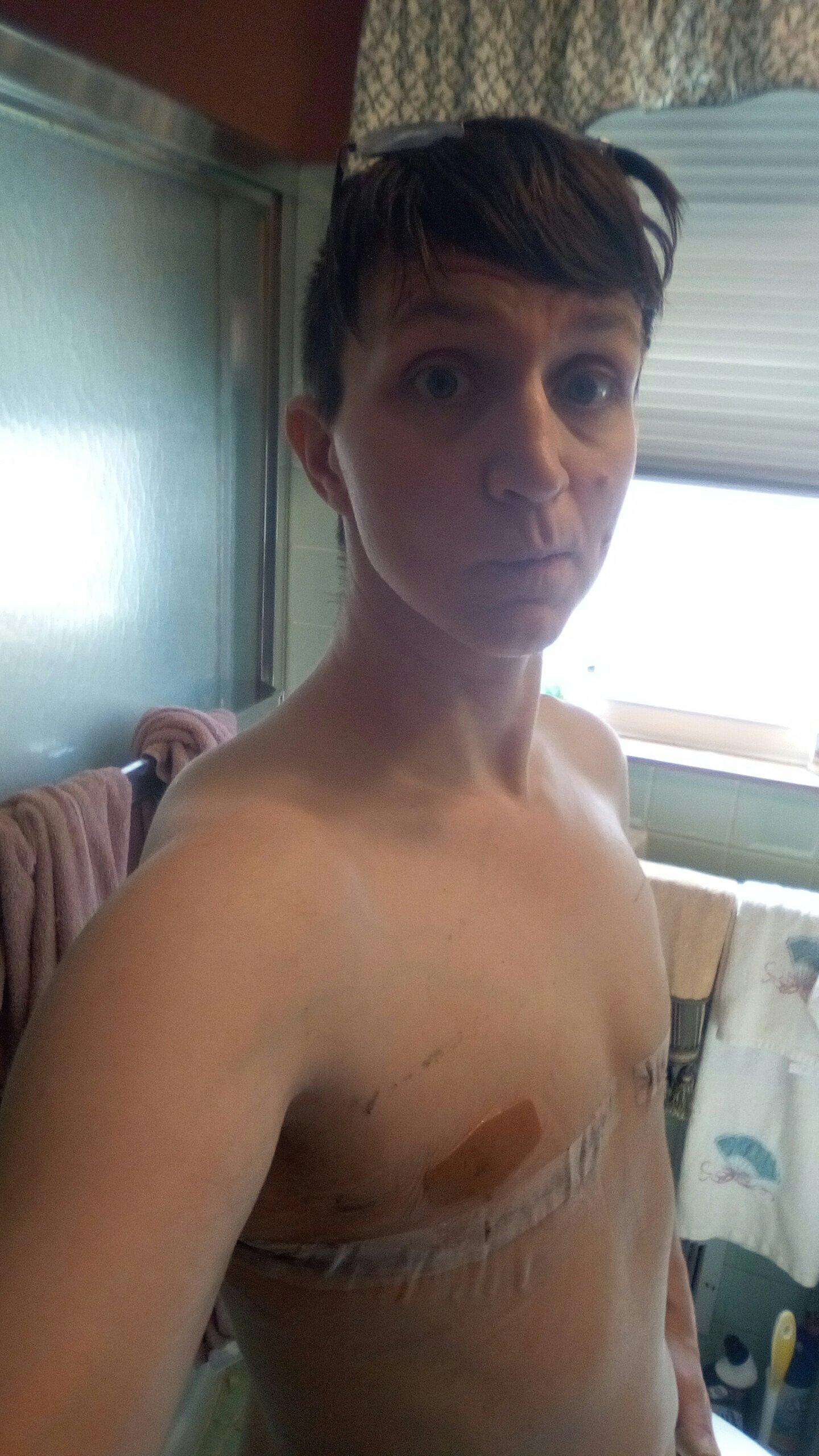 Anyway, my new Post-Surgical Pasties are, as you can see, much smaller (and Tegaderm-based). They’re still larger than is entirely necessary, but the sizes available seem to be “too big” or “too small.”