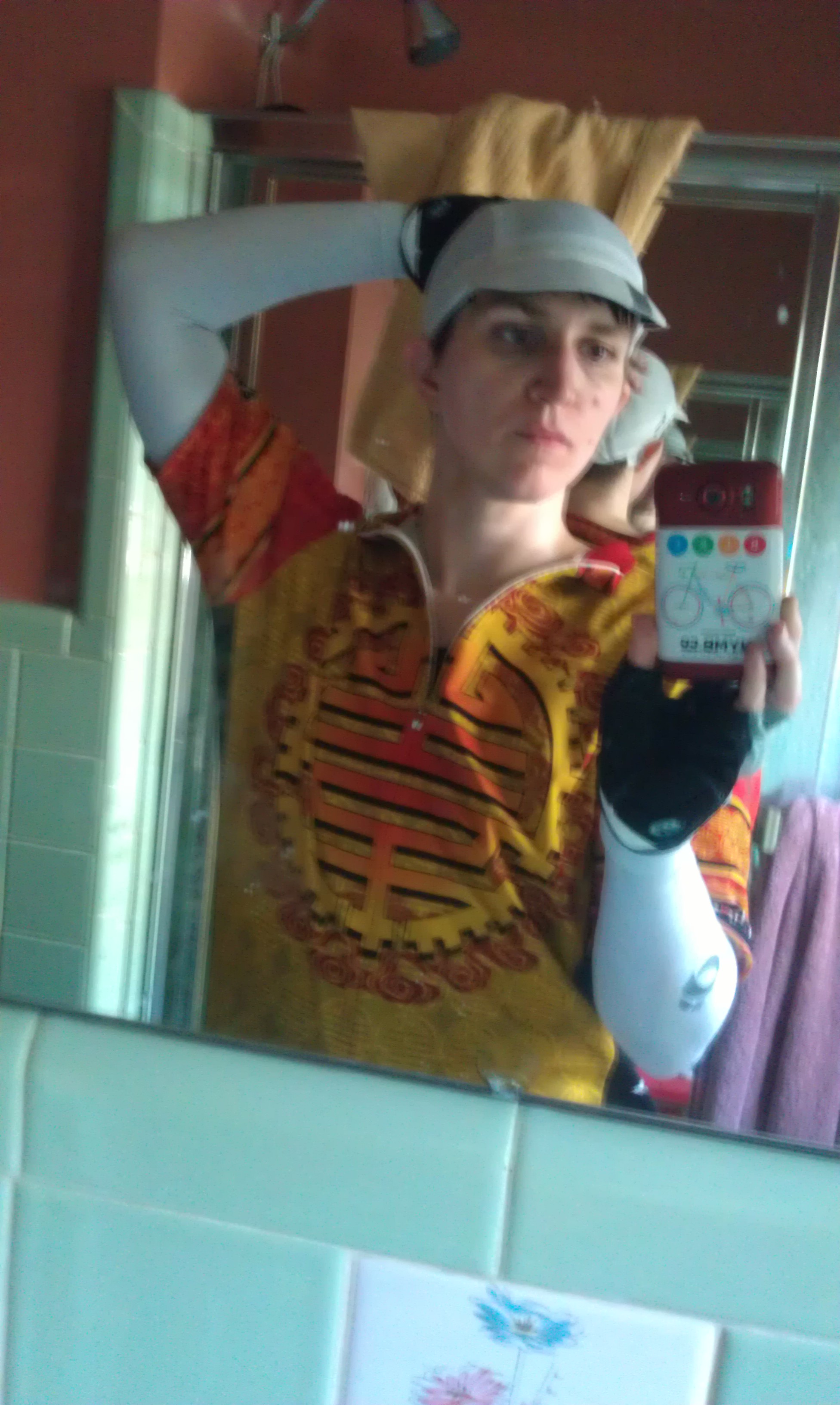 One note: usually, I think it’s ridiculous that armskins are labeled “left” and “right,” since normally they’re just basically tubes of fabric. The Sun Sleeves actually employ a different texture on their inner surfaces — a sort of dimpled effect that I suspect is designed to afford better evaporation near large veins close to the surface, thus improving the cooling effect. Thus, in this case, it’s probably worth paying attention to the “left” and “right” labels when donning your armskins.