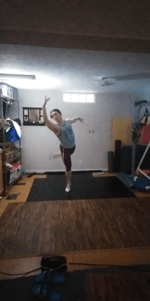 Felt like I could’ve stayed up there forever. Came down in complete control — allongé, arabesque balance, close to sous-sus, plié. First time, probably, that I’ve chosen to come down from a balance because the class was getting ready to start the second side! (Usually I choose to come down when it starts to feel like things are thinking about falling apart.)