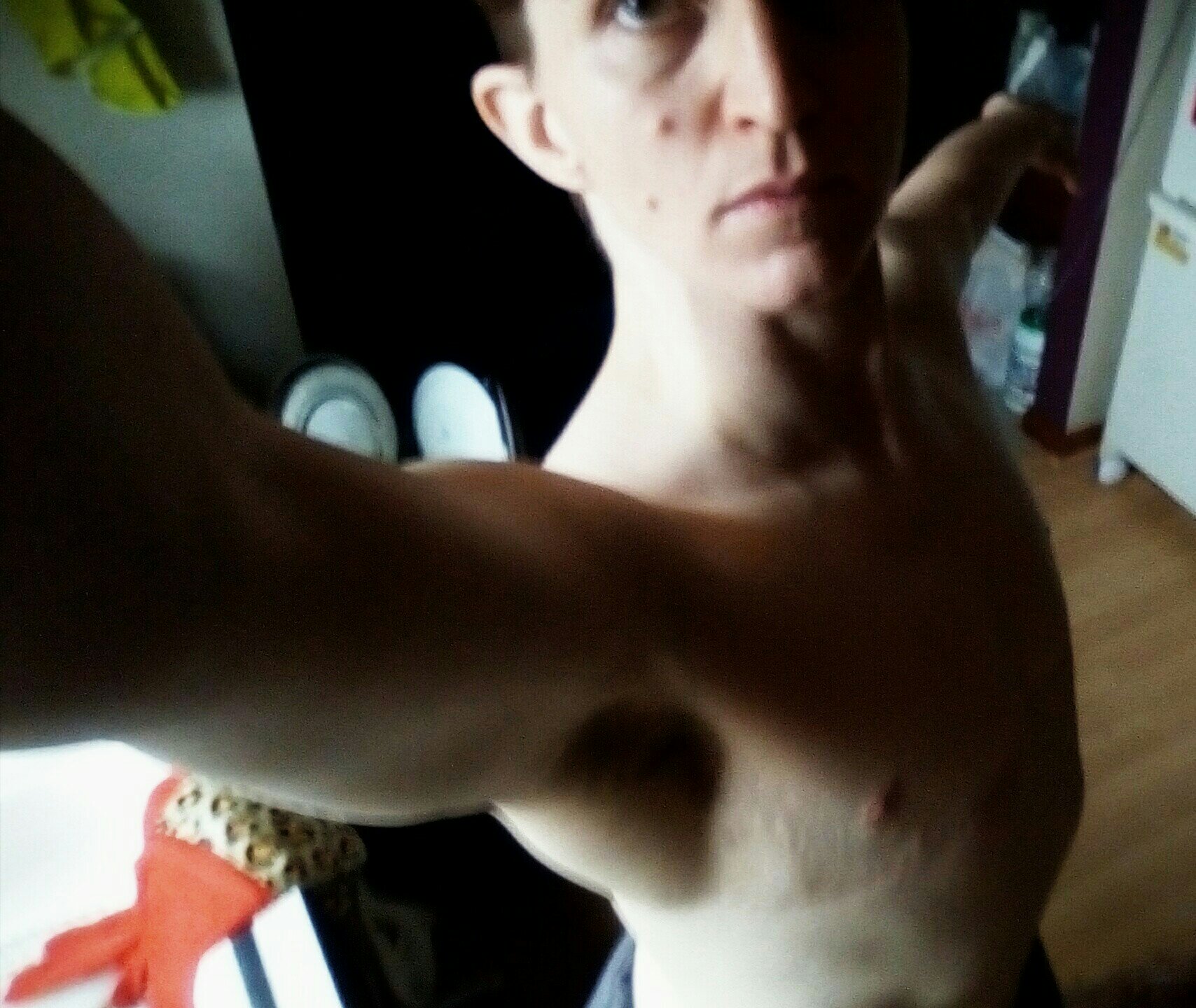 Anyway, it’s weird. You would think that having this sort of thing done would just result in feeling like, “Okay, cool—that’s just me without moobs.” Maybe that’s been how it does work for some people. For me, though, it’s made me realize that I only ever looked at parts of my body before: I thought I looked at the whole, but now I think I really didn’t. I can’t really otherwise explain how surprising my body is to me when I look at myself in the mirror now.