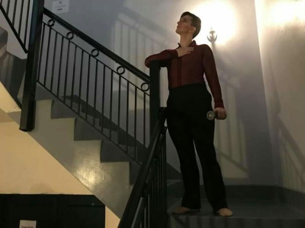 Anyway, we followed our terpsichorean triumph with one heck of a party, then hauled our heineys outta bed for class (my calf was iffy, so I opted not to jump—Memorial is a beautiful house, but the floor is pretty hard, and we did a bunch of jumps in our warm-up class before the show). Followed that with an hour of contact improv and 3 hour rehearsal: #dancerlife never stops 😛